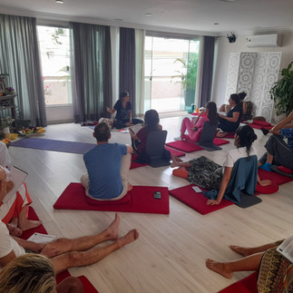 O tema do Retiro é integrar yoga na vida diária e treinar permanecer na perspectiva da Testemunha Silenciosa. Mudamos o modo de enxergar a prática, de pensar que ela depende apenas de algo exterior, do ambiente, de acessórios, dos professores.